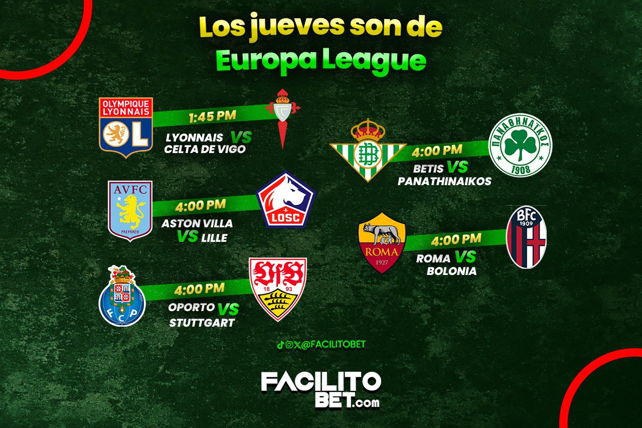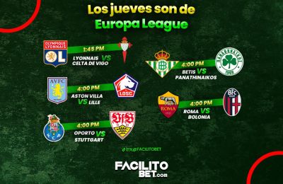 Hoy hay grandes partidos y en FacilitoBet te dejamos algunos favoritos para seguir de cerca: Aston Villa Roma Oporto Betis Lyon vs Cel…