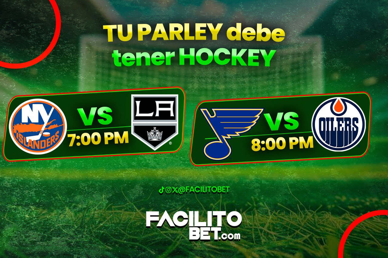 La jornada de hoy en la NHL trae dos partidos ideales para sumar valor a tu parley en FacilitoBet. New York Islanders sale con ligera ventaja ante Lo…