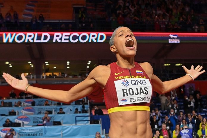 La venezolana Yulimar Rojas y la peruana Kimberly García, campeonas del mundo de triple salto y de 20 km marcha, respectivamente, comparten con la ni…