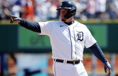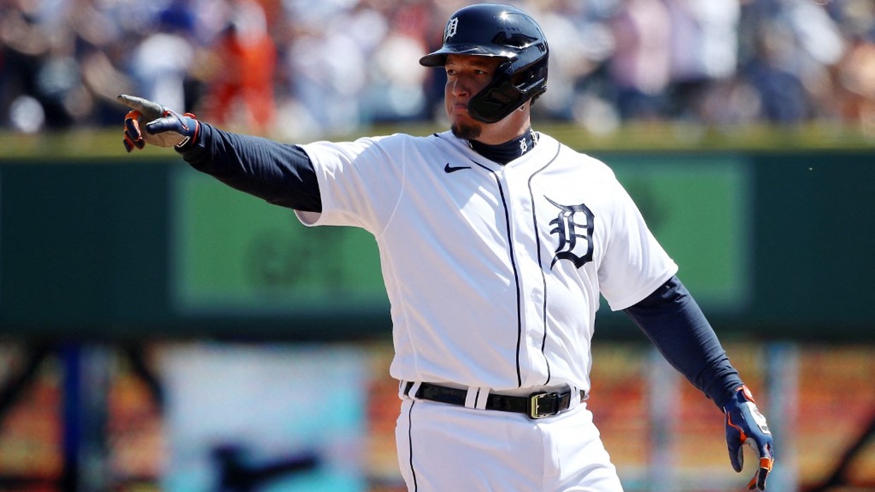 Nueva York, Estados Unidos.- El toletero venezolano Miguel Cabrera, de los Tigres de Detroit, y el inicialista Ty France, de los Marineros de Seattle…
