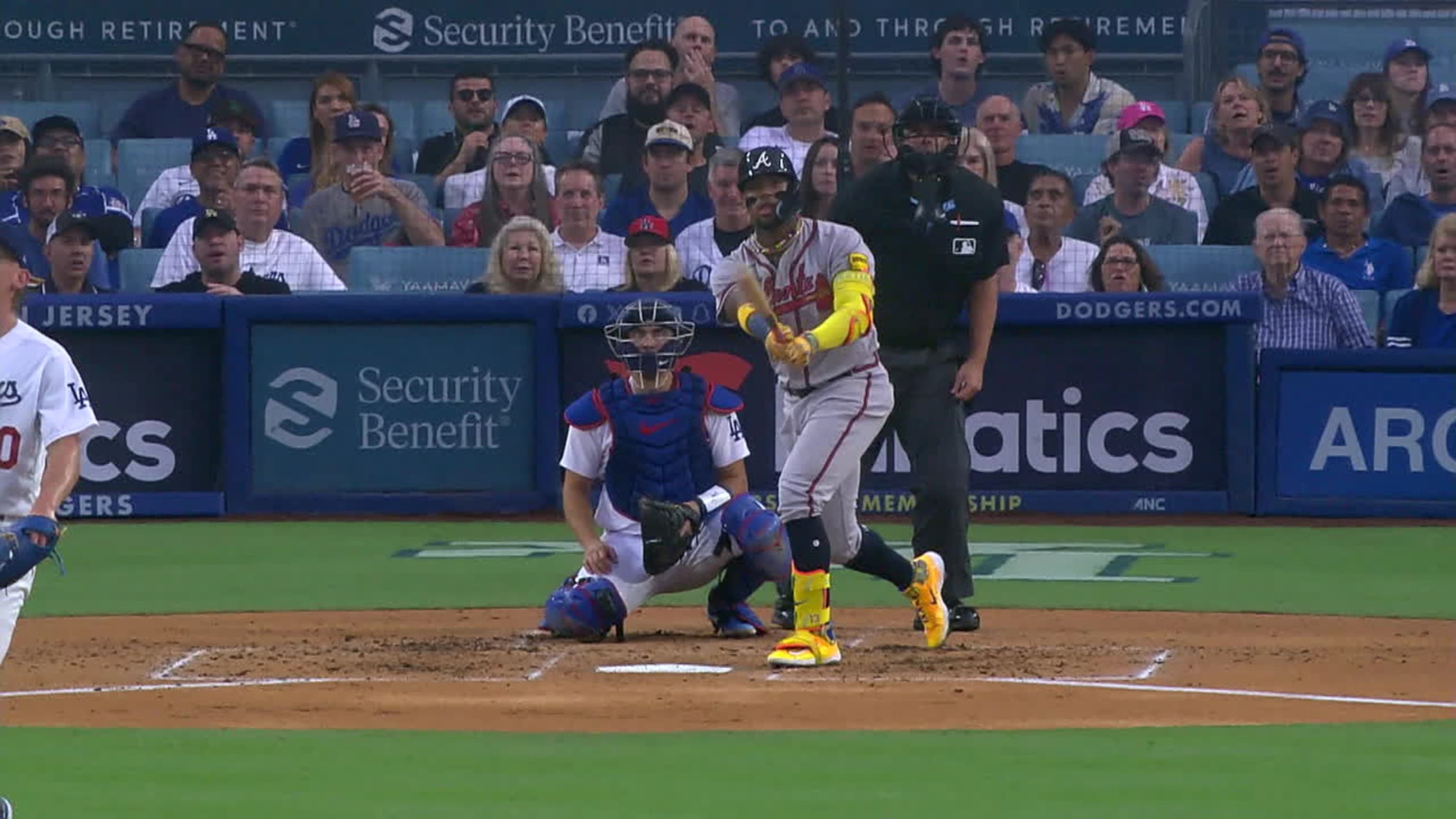 El cañonero de los Bravos conectó el batazo más fuerte de la temporada, cuando empalmó un jonrón solitario por el jardín central del Dodger Stadium en el tercer inning del encuentro del sábado.