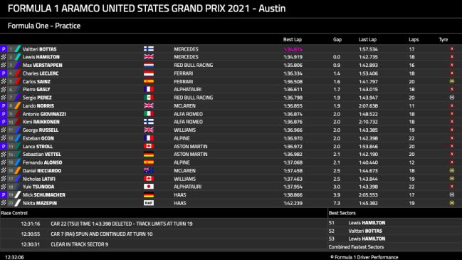 Delante, la primera sesión destaca a Mercedes como referencia indiscutible en Austin y confirma las sospechas: ya no están a la par con Red Bull, sino delante. En el entrenamiento, Bottas y Hamilton aventajaron a Verstappen en casi un segundo, una diferencia que parece insalvable durante el fin de semana. A favor del neerlandés, que Bottas saldrá con cinco puestos de castigo por cambiar le motor y eso elimina un rival directo, al menos en las primeras vueltas.