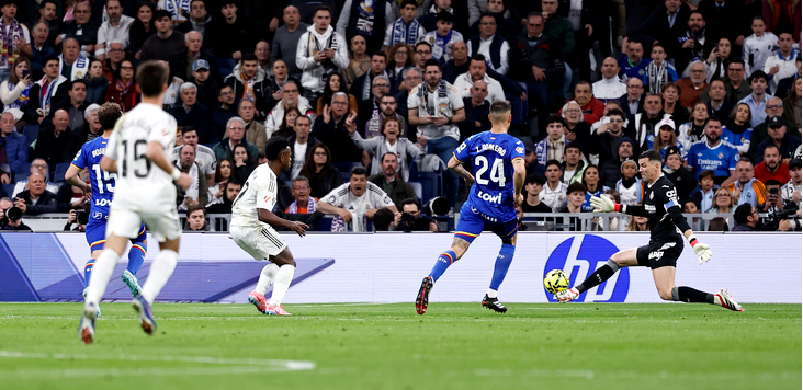 El equipo de Bordalás es tan transparente como difícil: hizo seis faltas en los siete primeros minutos. Nadie lee mejor la letra pequeña del reglamento. Su secreto es anticiparse al peligro, desactivar al rival lejos del área, defender muy alto para que no le hundan. Así recibió al Madrid, condenado a jugar en 30 metros. Un gran plan que pudo estropear Boselli cuando se aturulló en una pelota como último hombre y le regaló una ocasión inmejorable a Vinicius. El pie de David Soria desvió la bala. Caramelos así reparte pocos el Getafe.