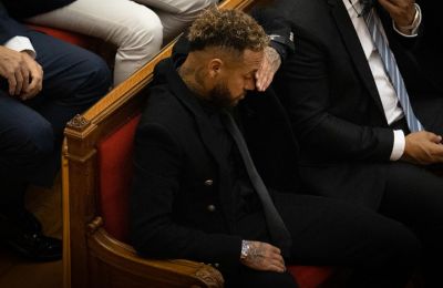 El futbolista, que la noche anterior anotó el gol de la victoria de su equipo ante el Marsella en la liga francesa, permaneció casi dos horas en la sala, sentado en la primera fila de un extenso banquillo de acusados, compartido con sus padres, los expresidentes del FC Barcelona Sandro Rosell y Josep Maria Bartomeu o los abogados de sus exclubes, Barça y Santos.