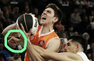 La primera es la acción (esta retuiteada) en la que Walter Tavares arrolla a Sergio de Larrea en un ataque del Madrid y que los colegiados señalaron como falta del base valencianista. También subió una captura de esta jugada en el tercer mensaje. 97-87 en ese momento en el marcador.